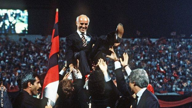 Highly influential Italian coach Nereo Rocco implemented similar ideas at Triestina, developing Ivano Blason into arguably the world’s first widely celebrated libero and managing a shock second-place Serie A finish as a result. Rocco later joined AC Milan, where he introduced similar tactical ideas and won two Serie A titles, three Coppa Italia titles, two European Cups, two European Cup Winners’ Cups, and an Intercontinental Cup.
